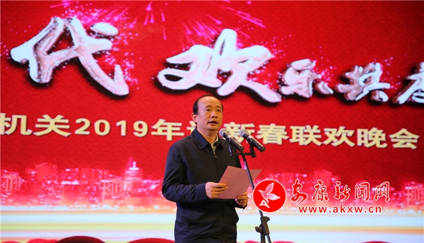 陈明代表市委、市政府向大家致以诚挚的问候和新春的祝福。他指出,2018年,全市经济总量首次突破千亿大关,主要经济指标增速继续保持全省第一方阵,追赶超越迈出了坚实步伐,发展活力全面激发,一批惠民举措落地实施,社会治理共建共治共享格局逐步形成。他强调,今年是新中国成立70周年,市委市政府机关干部职工要高举习近平新时代中国特色社会主义思想伟大旗帜,增强“四个意识”,坚定“四个自信”,做到“两个维护”,大力弘扬“安康创优精神”,以更加饱满的热情、更加务实的作风、更加高效的工作,一起拼搏,一起奋斗,为开创建设西北生态经济强市和全面建成小康社会新局面做出新的贡献。