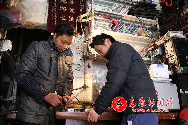 1980年出生的刘得群,老家在汉滨区晏坝镇胡家沟村,1998年从武汉无线电工业学校毕业后,只身回到安康创业。考虑到当时既能离学校近一点,又能离居民生活区近一点,刘得群将店开在了五星街11号,一开就是20年。上下两层的红砖房,一楼营业面积不足10平方米,加上二楼和库房,大概有50平方米。20年来,刘得群小小的修理店不但服务着就近的社区,也联系着广大农村和周边县区。