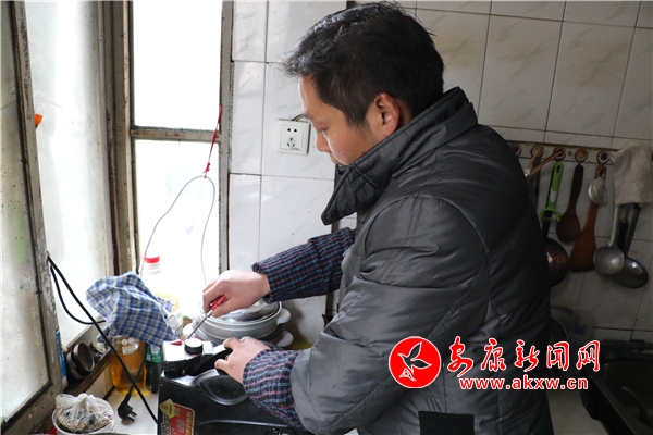 采访中,“老顾客”、87岁的马希琴老人打来电话,说自己家的电饼铛坏了。从修理铺到汉滨高中家属院只有几分钟的路程,刘得群挎上维修包,再次踏上这条走了近二十年的路。