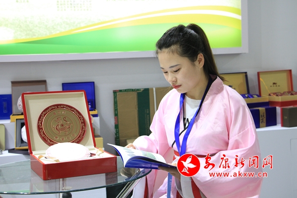 “秦汉古茶是世界上最早的茶,现有青龙、白虎、朱雀、玄武四大系列茶品,今天是展销会的第一天,已经吸引了很多展客品尝,大家纷纷对秦汉古茶给予了很高的评价”。安康秦汉古茶股份发展有限公司解说员王晓芳说到。