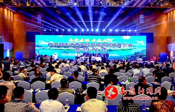与会人员观看了白河形象宣传片和围绕招商、文化旅游和木瓜产业等进行的推介活动。本次推介会,白河县各镇、各部门共引进项目14个,总金额8.2亿元。