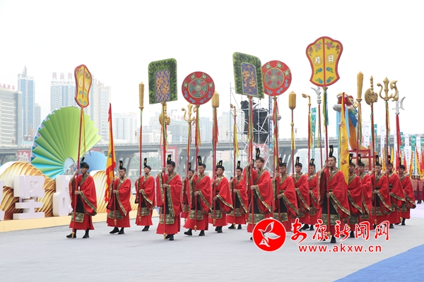 “请龙了”上午9时整,观礼台上空传来小女孩清澈空灵的声音,龙舟主题活动进入第一篇章——“龙腾汉江·祭”。百面大鼓同时敲响,请龙方阵步履矫健,护送龙头至观礼台正中。百名少年儿童着汉服、持竹简、颂祭文,主祭官捋龙须、掸浮尘、三叩首。18名壮汉敬酒摔碗祭龙头,合龙方阵护送龙身缓步走来,鼓乐齐鸣中完成合龙。龙头祭祀圆满礼成,仪式庄严而神圣,传递出安康万千百姓祈福风调雨顺、万家平安的美好心愿。