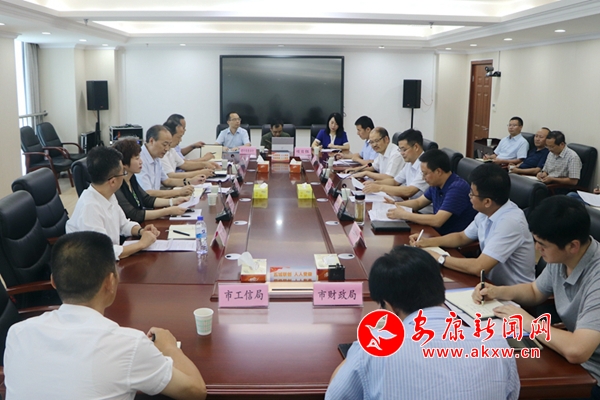 在“中国建行援建•安康智慧治理”项目组办公地点,调研组一行看望慰问项目工作人员,了解项目建设情况;随后与市上相关部门座谈交流,听取安康市电子政务建设和推动政务服务“一网通办”工作情况汇报。