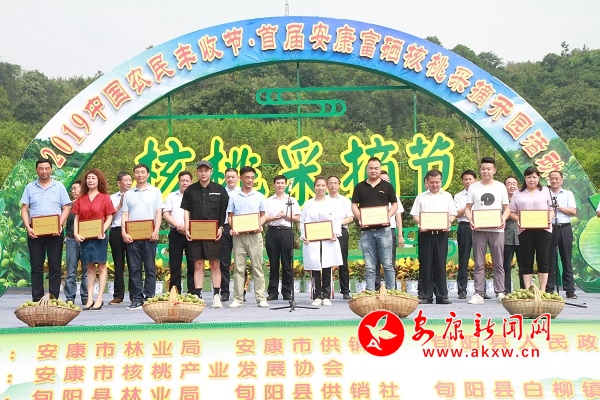 当天的采摘活动现场,锣鼓欢腾、人头攒动,农民朋友自发组织的一台台具有乡土气息的精彩文艺节目,赢得全场观众阵阵掌声。最受游客欢迎的是在核桃园区举办的核桃采摘比赛、核桃剥壳比赛、特色农产品展示展销采购等体验活动,由来宾、游客朋友们共同参与互动,既体验了乐趣,又收获了果品。活动现场还宣读了安康核桃产业发展报告,并对10户安康市“核桃创新产品奖”企业和10名安康市“核桃树王”种植户进行了表彰授牌。