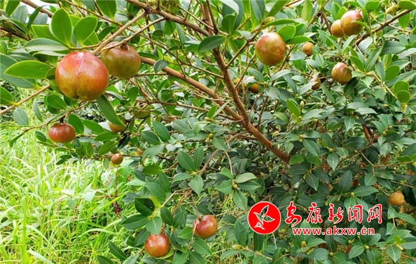 顶着烈日,站在坡上,满眼都是油茶树。阳光下,油茶果挂在枝头,娇艳欲滴;大豆不甘示弱,葱葱茏茏,毛豆荚正在成熟。