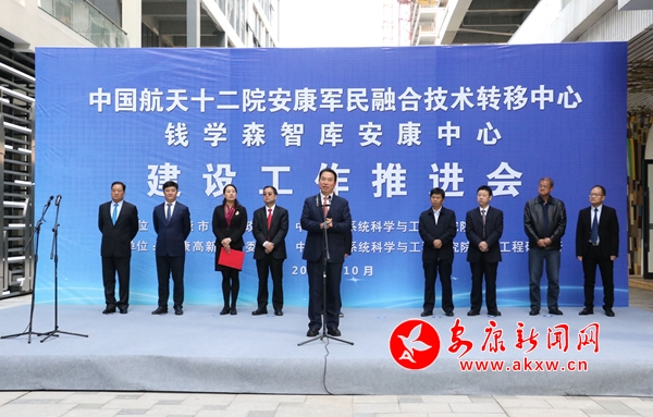 推进会上,薛惠锋、钱永刚、赵俊民为“中国航天十二院安康军民融合技术转移中心”和“钱学森智库安康中心”揭牌。薛惠锋指出,中国航天十二院作为中国航天科技集团的智库核心,是钱学森思想的第一传承者和践行者。“中国航天十二院安康军民融合技术转移中心”和“钱学森智库安康中心”的成立,是航天技术走向民间、服务民生最好的实践,中国航天十二院将发挥智库、科技、教育、军民融合等方面的优势,继承并发扬钱学森精神,为安康经济转型升级和人才创新培养提供“试验田”、打造“先行区”。