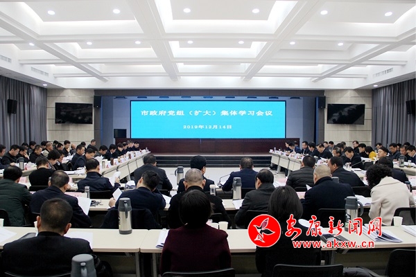 本网讯(通讯员 安政轩)12月14日上午,市政府党组书记、市长赵俊民主持召开市政府党组(扩大)集体学习会议,传达学习中央经济工作会议、近期中央政治局、中央深改委、中央党外人士座谈等会议精神,习近平出席金砖国家工商论坛相关活动、近期重要寄语、指示、勉励精神,近期国务院常务会议、南水北调后续工程工作会议、研究部署“十四五”规划编制专题会议精神,全省部分市纪检监察工作座谈会精神,组织学习习近平重要文章《坚持、完善和发展中国特色社会主义国家制度与法律制度》《学习马克思主义基本理论是共产党人的必修课》,中共中央、国务院《关于保持土地承包关系稳定并长久不变的意见》《关于推进贸易高质量发展的指导意见》《新时代爱国主义教育实施纲要》《国家积极应对人口老龄化中长期规划》,国务院《关于加强和规范事中事后监管的指导意见》《关于进一步做好利用外资工作的意见》,中办、国办《关于强化知识产权保护的意见》,国办《关于切实加强高标准农田建设提升国家粮食安全保障能力的意见》,中央“不忘初心、牢记使命”主题教育领导小组《关于整治“景观亮化工程”过度化等“政绩工程”、“面子工程”问题的通知》,省委《关于认真学习贯彻中央政协工作会议和<中共中央关于新时代加强和改进人民政协工作的意见>精神的通知》,省委办、省政府办《关于加强和完善异地扶贫搬迁后续扶持工作的意见》,《陕西省节庆活动管理实施办法》,《安康市硒资源保护与利用条例》等文件。