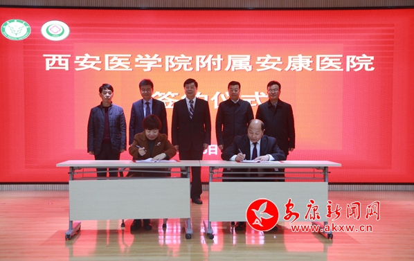 会上,西安医学院与安康市中心医院签订了《西安医学院校外教学基地协议书》《临床医学专业学位硕士研究生联合培养合作协议书》,并为“西安医学院附属安康医院”“西安医学院研究生联合培养基地”进行了揭牌。