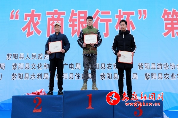 经过两个多小时的激烈角逐,来自安康绕八冬泳队的汪学翔和汪星分别获得了男子青年组和男子中年组第一名,西安雁塔区零度泳协的肖平获得了男子老年组第一名,西安市泳协的刘巧琴获得了女子组第一名。