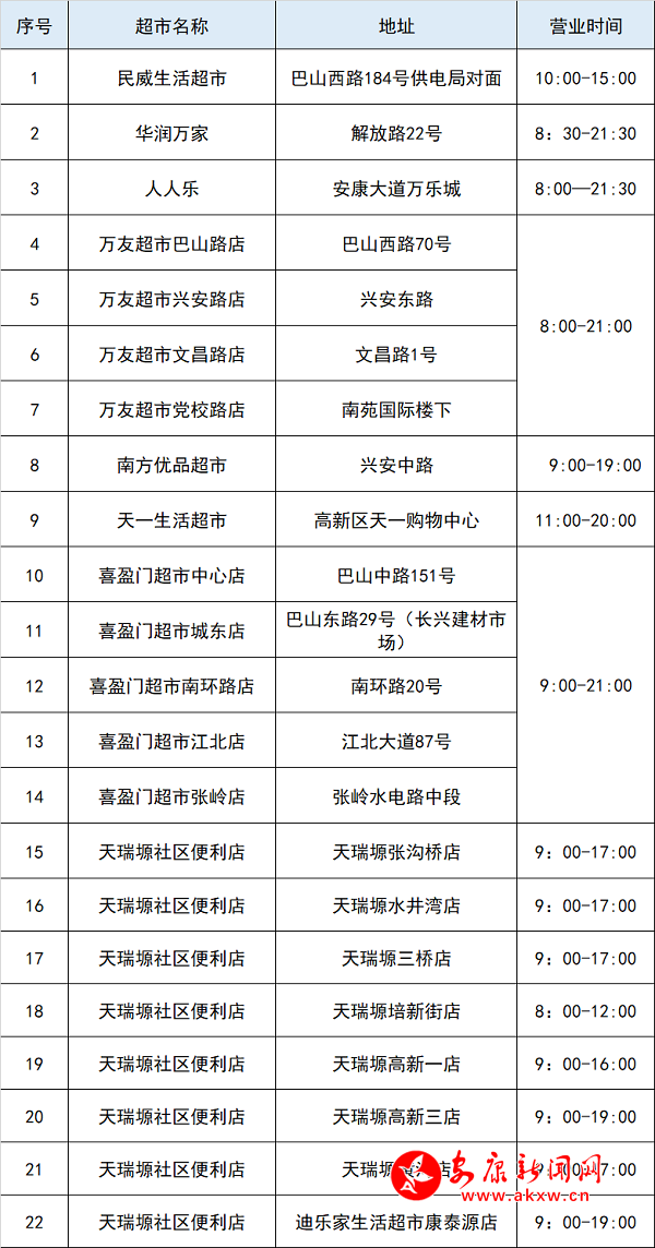 附:各超市营业时间及地址