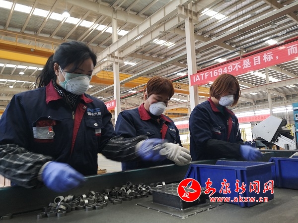 测量体温、全身消毒,戴上口罩等程序后,工人们陆续进入厂区,这是今天早上7点50分,陕西南水汽车配件制造有限公司内的场景。在装配车间,生产线上佩戴好口罩的工人们,在各条流水线上的员工正如火如荼地进行各项操作。该公司主要负责人告诉记者,为了做好企业复工复产后员工的生命安全和身体健康保障,公司每天对公共场所和生产区用消毒液进行多次消毒,详细排查所有员工出行、接触人员情况,并为员工免费提供口罩,每次上岗前进行检测。