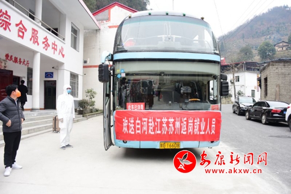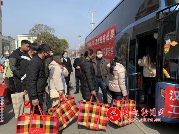 白河县31名贫困劳动力统一乘车前往江苏常州、苏州、镇江返岗务工。