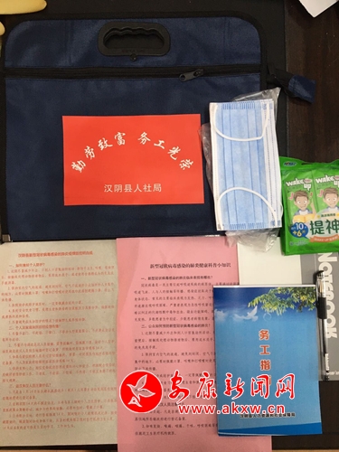 为了实现“从家门到企业”的“一站式”服务,保障外出务工人员安全返岗复工,相关职能部门专门为每名务工人员准备了装有新冠病毒科普知识、务工指南、维权手册、速食品和水等用品的纪念包,发放了口罩、湿巾等防护用品。