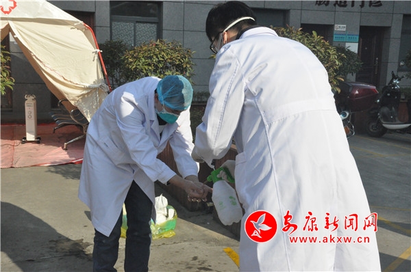 每次“回家”,吉河镇卫生院院长贾晓桥就让怀二胎的妻子把干净衣服送到楼下,换完后再把脏衣服包好放在地上,眼巴巴看着大女儿近在咫尺,却只能隔空“嘻戏”。