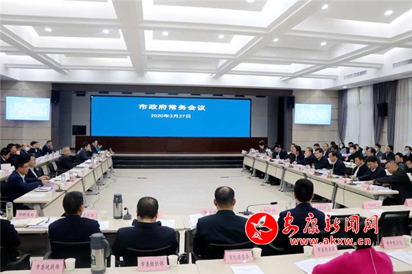 本网讯(通讯员 安政轩)3月27日上午,市长赵俊民主持召开市政府常务会议,研究决战决胜脱贫攻坚、新冠肺炎疫情防控与复工复产、春季开学复课等工作。市人大常委会副主任陈伦宝、市政协副主席黄骁勇、安康军分区司令员李全国应邀出席会议,市人大代表谢蓉、来燕、付远军,市政协委员陈友志、杨彬应邀旁听会议。