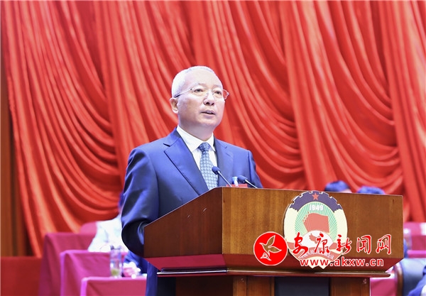 五月的安康,绿荫如海,生机盎然。主席台正中,中国人民政治协商会议会徽高悬,十面鲜艳的红旗分列两侧。会场的巨幅标语“高举习近平新时代中国特色社会主义思想伟大旗帜 为加快建设西北生态经济强市凝心聚力”庄重而醒目。