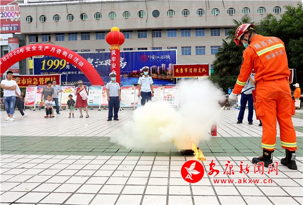 “燃气管路或燃气灶着火时,只要关闭其上部的阀门,燃气火焰就会熄灭。也可先用灭火器、湿抹布将火扑灭,再迅速关闭阀门。”活动现场,市消防支队消防员现场开展扑灭火演练,向市民介绍消防器材的使用、火灾逃生技能、火灾报警常识。广场上还设置了安全生产法律法规和警示教育宣传展板,各安全生产生活相关单位和机构积极发放安全生产宣传手册,为市民提供安全生产政策法规及防火、减灾、防灾、应急救援、逃生自救等安全知识咨询服务。