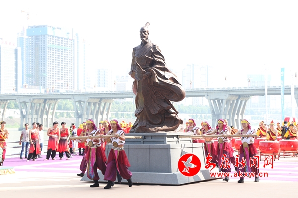 “缅怀先贤”随着主祭官一声令下,百名少年儿童方阵,着汉服,持竹简,缓缓步入舞台,在悠扬婉转的古筝声中,齐声吟诵祭文。在全场目光的注视下,爱国诗人屈原塑像被九位壮汉护送至舞台正中。在主祭官的引导下,众人向屈原塑像鞠躬叩首,并将粽子投入江中,以示对先贤的敬畏与追思。