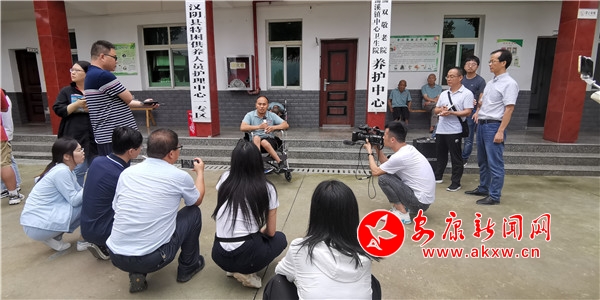 汉阴县蒲双敬老院里,采访团对汉阴县将医养结合,以蒲双敬老院为依托,与镇卫生院联合成立失能群体供养养护中心这样的模式表现出浓厚的兴趣,表示将汉阴县以贫助贫以残助残的好做法广泛地宣传出去。