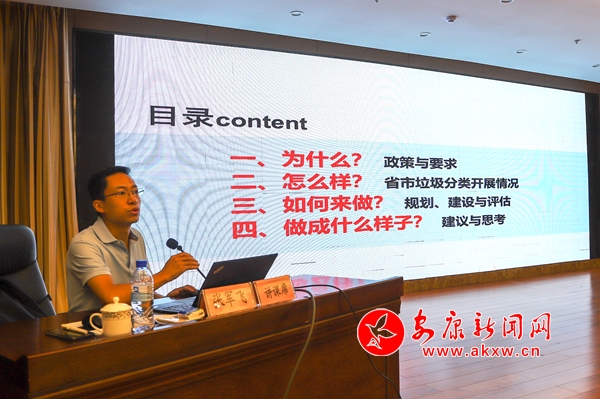 张军飞先后主持完成《陕西省城市生活垃圾分类公共机构建设导则》《陕西省城市生活垃圾分类示范片区建设标准》等省级规范与技术导则9项,是我省生活垃圾分类领域的专家。当天,他从“为什么、怎么样、如何做、做成什么样子”四个方面就开展城市生活垃圾分类工作的现状、规划、建设、评估等方面进行了深入浅出、全面细致的讲解。