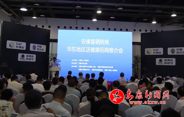 本网讯 (记者 魏涛)8月11日,借助第三届中国森林食品交易博览会平台,以“发展安康富硒核桃、服务全国人民健康”为主题的安康富硒核桃华东地区送健康活动在上海光大会展中心举行。全国木材行业管理办公室原副主任孙建,中国绿化基金会副主席王祝雄,中国林业产业联合会副秘书长石峰,陕西省林业局二级巡视员程建中出席活动,安康市政府副市长鲁琦、上海陕西安康商会会长白建博为活动致辞,安康市林业局、中国农科院郑州果树研究所专家对安康富硒核桃进行了推介。
