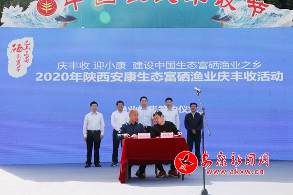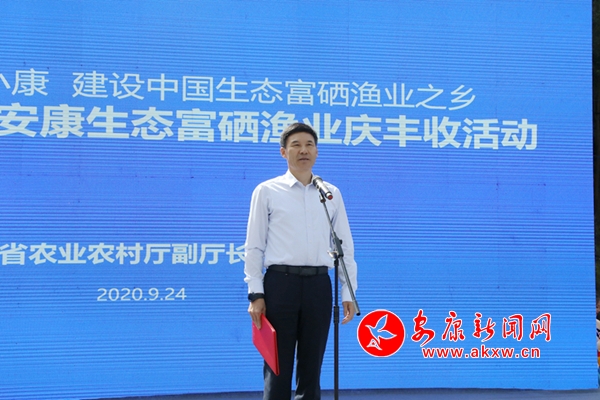 本网讯(记者 艾蓓)9月24日上午,由省农业农村厅、安康市人民政府主办的2020年中国农民丰收节·陕西安康生态富硒渔业庆丰收活动在岚皋县南宫山镇岚翠湖举行。省农业农村厅副厅长蔡斌宣布活动启动,市委副书记、市长赵俊民致辞,市委副书记王刚主持,市政协副主席、岚皋县委书记周康成出席活动。