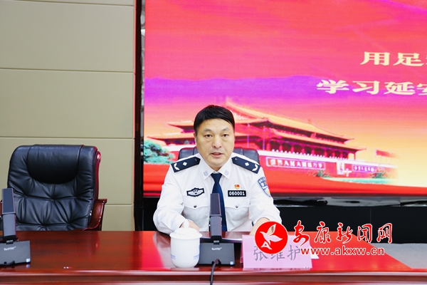 会上,李宗国同志以“守望相助、奋勇当先”为题,结合实例,讲述了基层一线民警在抗疫斗争中为守护陕鄂界人民群众生命安全挺身而战,用实际行动诠释“陕鄂一家亲”深厚情谊的感人事迹,以及聆听习近平总书记重要讲话的切身感受。赵耀宏教授以“延安整风与党的作风建设”为题,从延安整风的背景及原因、延安整风的主要内容与方针、延安整风的贡献及其对党的作风建设的现实启示等三个方面,做了精彩辅导和生动解读。