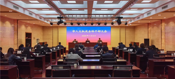 常委会党组会议结束后,机关党组紧接着召开县级以下全体干部会议,传达学习党的十九届五中全会精神,安排部署了机关工作。