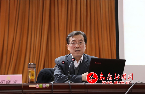 本网讯(记者 肖兵 通讯员 杨艳 张伟)11月30日,党的十九届五中全会精神省委宣讲团宣讲报告会在我市举行。省委宣讲团成员、省社科院党组书记、院长司晓宏作宣讲报告,市委常委、宣传部部长罗雪剑主持。