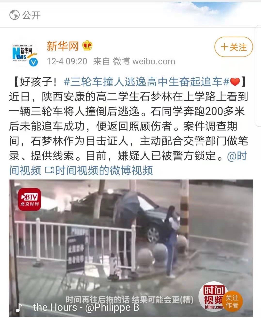 本网讯 12月2日,安康一位“追车少年”见义勇为敢担当的事迹经由安康日报、安康新闻网首发报道后立即引起了广泛关注,网友盛赞安康这名“追车少年”勇敢、善良,真“帅”!