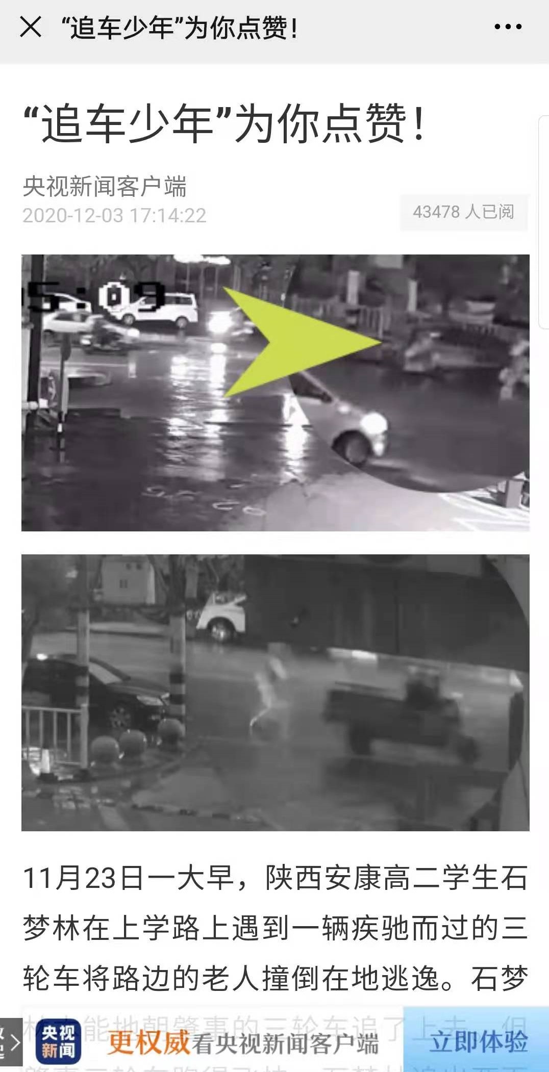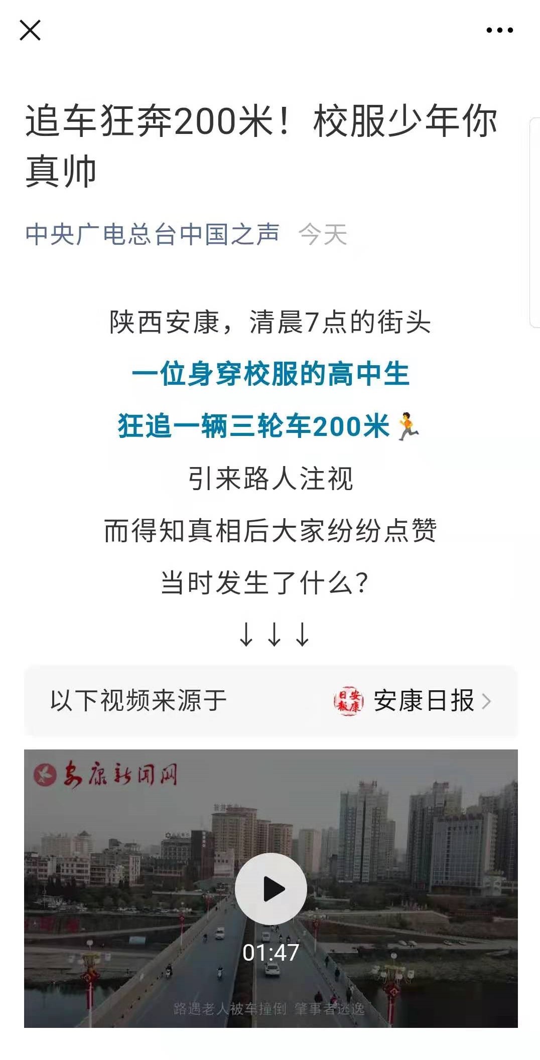 新闻链接:奋勇追拦肇事车 紧急救助受伤者 安康学子见义勇为显担当