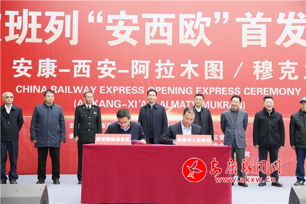 据了解,“安西欧”专列将从安康始发,抵达西安港集结中转,再次搭乘中欧专列长安号,向西发往哈萨克斯坦阿拉木图、乌兹别克斯坦塔什干、德国穆克兰等中欧主要站点城市。专列首发仪式上,市政府与西安国际港务区管委会签订了《开行中欧班列(安西欧)合作协议》。