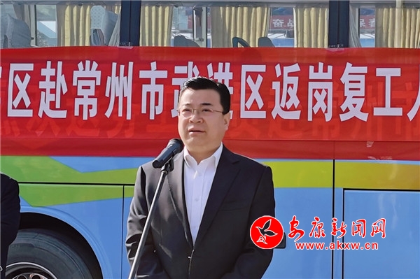 高晶华首先代表市委、市政府对即将离开家乡、奔赴武进的返岗务工人员致以诚挚问候。他指出,苏陕一家亲,安常故事多。苏陕劳务协作是两地资源互补、共赢发展的重要之举,为实现我市剩余劳动力稳定就业、助力脱贫攻坚作出了积极贡献。经过我市汉滨区和常州市武进区共同努力,大年初八即组织务工人员集体返岗就业,体现出两地服务群众、携手发展的共同期盼和务实作风,是双方深化交流合作的重要成果。希望赴常务工人员安心工作、开心工作,以自己勤劳智慧的双手谱写新生活、创造新业绩。