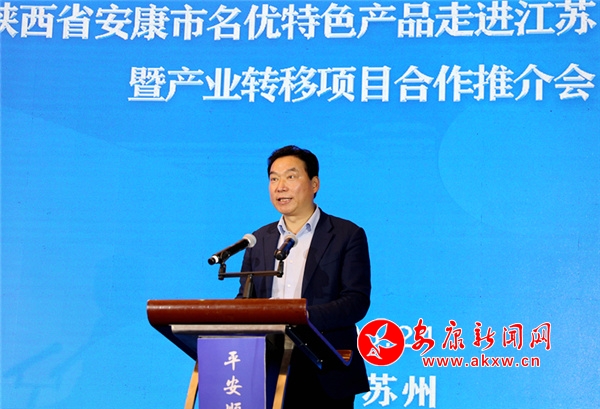 本网讯(记者 艾蓓)3月24日,安康市人民政府联合陕西省工信厅、商务厅、省台办主办的“平安顺利·幸福安康—陕西省安康市名优特色产品走进江苏(苏州)暨产业转移项目合作推介会”在苏州成功举办。市长赵俊民、陕西省工信厅二级巡视员沈长友、苏州市政府副秘书长陈春明出席会议并致辞,陕西省台办二级巡视员多林,市委常委、统战部部长雷西明,市政协副主席、市工商联主席孟平,安康市开放发展高级顾问杨尧成等出席会议。副市长寇全安主持会议。