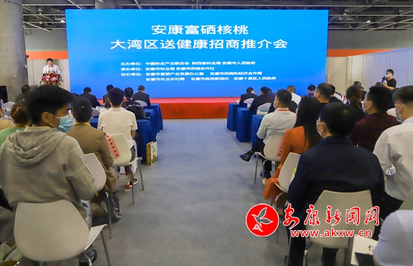 本网讯(记者 吴单)借助2021年广州国际森林食品交易博览会交流平台,4月9日,安康富硒核桃大湾区送健康招商推介活动在广州市保利世贸博览馆举行。中国林业产业联合会秘书长助理、标准化技术委员会秘书长、中国林产工业协会常务副秘书长祝远虹,陕西省林业产业中心主任靳林,陕西省林业局脱贫办主任张怀科,江西省宜春市林业局局长李苏荣、油茶局局长张津平等出席活动,安康市副市长鲁琦、广东省陕西安康商会会长何禹明分别致辞。
