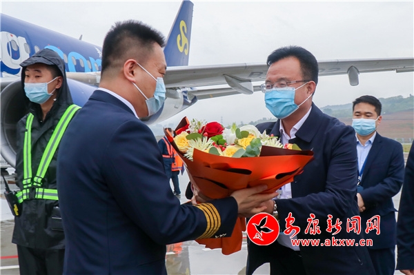 本网讯(记者 吴单)4月20日上午,春秋航空9C6737次航班平稳降落在安康富强机场,标志着兰州—安康—常州航线成功首航。市委常委、副市长刘建平出席首航仪式并向机组人员献花,祝贺首航取得圆满成功。