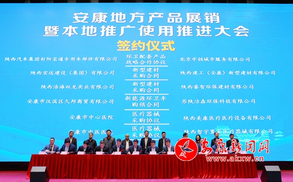 会上,市工信局、商务局、卫健委、住建局分别介绍了全市地方名优特色产品及使用情况,汉滨区、旬阳县、安康高新区做表态发言,龙王泉富硒矿泉水、智宇寰宸医疗器械、普瑞达电梯、睿智环保建材、好又多商贸、长安银行安康分行等与会代表进行交流发言。本次活动签订投资协议和购销合同30个,累计签约金额17.05亿元,富硒食品、新型材料、装备制造、生物医药、电子信息、毛绒玩具等近100家企业代表携带产品参展。