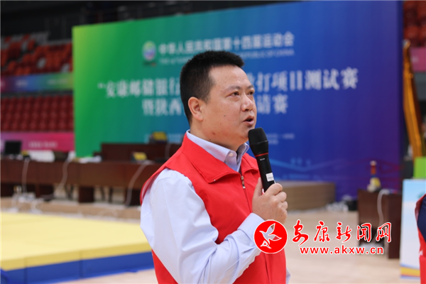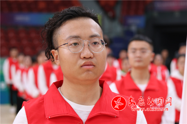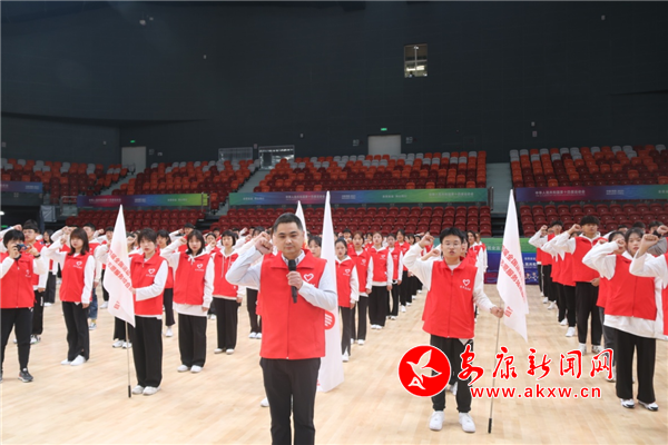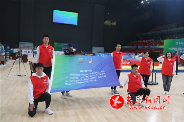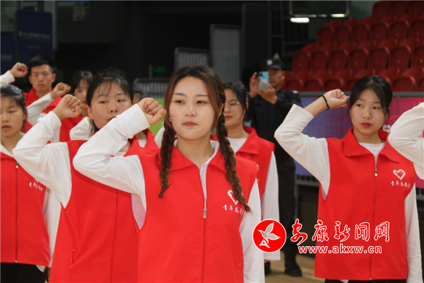 随后市委文明办思想道德建设科科长、项目竞委会志愿者和观众服务处副处长刘献兵带领全场志愿者进行宣誓。大家铿锵有力的宣读着誓词:“我愿意成为一名光荣的青年志愿者。我承诺:尽己所能,不计报酬,帮助他人,服务社会。践行志愿精神,传播先进文化,为办一届精彩圆满的体育盛会贡献一份力量。”