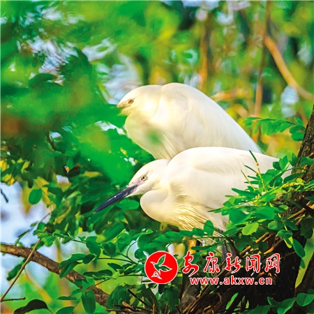 在安康高新区二垱村陈家祠堂附近,生活着一群白鹭,它们每年春天来这里交配产卵,繁衍后代。据说它们已经在这里生活了二三十年,这是安康市几十年来坚持生态建设取得重大成效的重要标志。