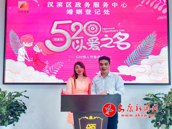 本网讯(实习记者 赵漪湉)今天是5月20日,很多情侣选择在这个充满寓意的日子里结婚登记。在汉滨区民政局婚姻登记处,5月20日这天也出现了结婚登记高峰。