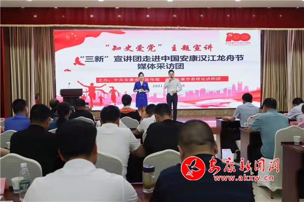 本网讯(记者 吴单 通讯员 杨艳 栗琳)6月11日,“三新”宣讲团“知史爱党”主题宣讲走进中国安康汉江龙舟节媒体采访团活动在安康宾馆举行。市委宣传部、市委讲师团相关领导出席。新华社、光明日报、陕西日报等30余家中省市媒体参加活动。