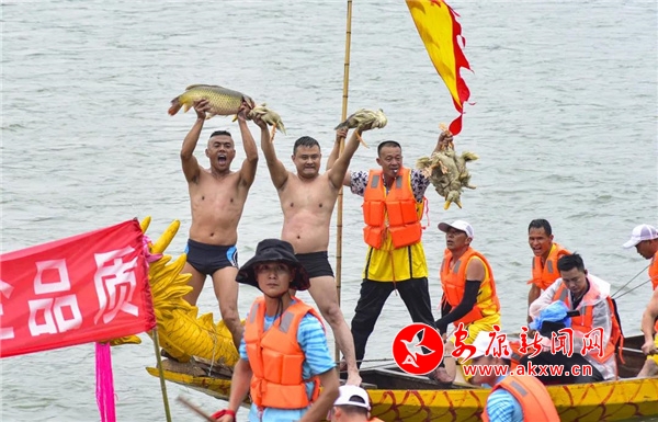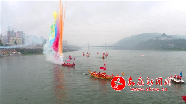江面上,随着五彩的烟花燃起,25艘龙舟正抖擞精神破浪而来,龙舟横渡竞赛显秦巴好汉英雄本色和汉江儿女满腔豪情,抢鸭子摸鲤鱼带给现场吉祥欢乐和意趣盎然,中国特技滑水队通过高难度的花式水上表演让观众多方面感受人与水互动的独特魅力。