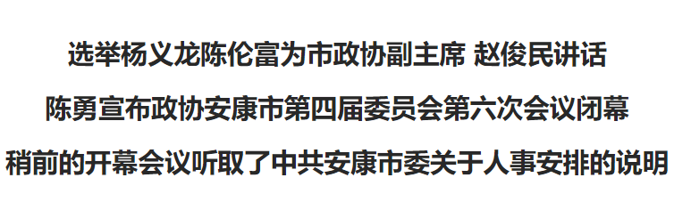 闭幕会前召开的市政协四届六次会议第二次全体会议,选举杨义龙、陈伦富为市政协副主席。