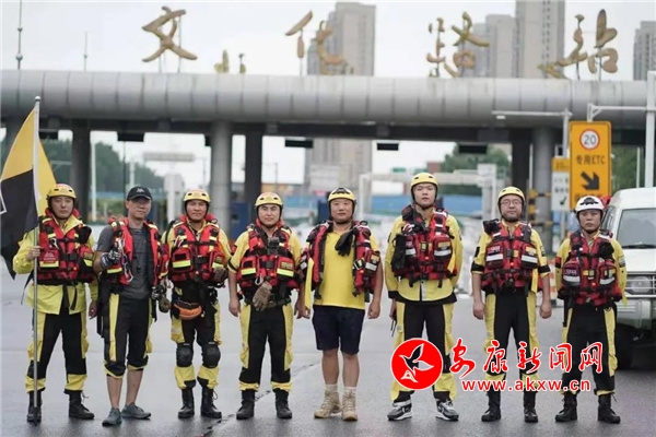 7月20日,河南暴雨引发全国关注,陕西多支志愿者团队连夜赶赴河南参与救灾。陕西公羊救援队参与了此次救援,其中,队员章超(下图左一)来自安康。