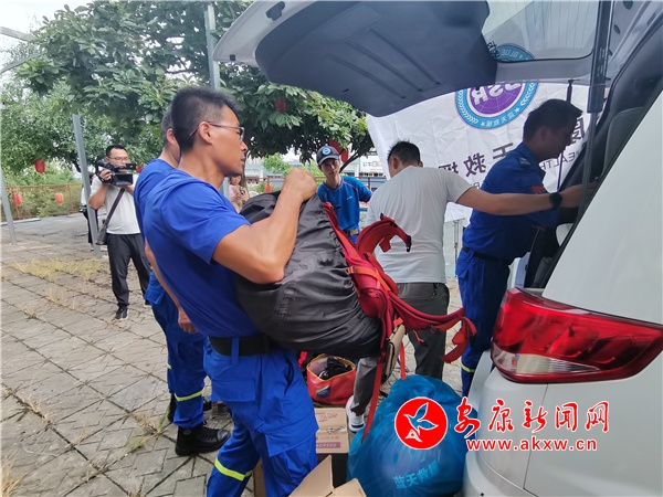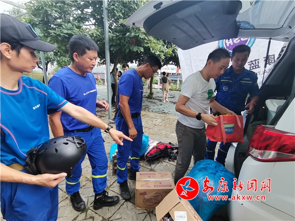 浮力马甲、头盔、抛绳包、50米绳、30米绳、急救包、固定板、太阳灯……准备现场,队员们逐一认真核对所携带的救援装备,不时有志愿者送来捐赠的生活用品。