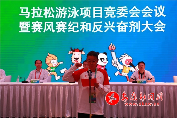 本网讯(记者 陆青波 魏涛)9月10日晚,第十四届全运会马拉松游泳项目竞委会会议暨赛风赛纪和反兴奋剂大会召开。十四运会马拉松游泳项目竞委会副主任、国家体育总局游泳运动管理中心党委副书记李军讲话,国家体育总局游泳运动管理中心社会活动部副主任许琦,十四运会马拉松游泳项目竞委会副主任、陕西省游泳运动管理中心主任谭敏出席活动。十四运会马拉松游泳项目竞委会副主任、安康市政府副秘书长刘福全致辞。竞委会各处室负责人、全体技术官员、21支运动队全体人员参加会议。