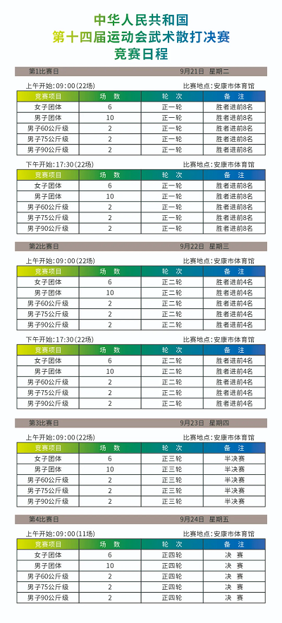 9月21日—24日第十四届全国运动会武术散打比赛将在安康体育馆正式开赛,这份“最全观赛指南”快快查收!