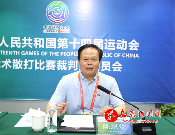 陈恩堂强调,武术振兴,要按照国家体育总局领导要求,从武纪抓起。要狠抓赛风赛纪,一抓到底,一刻不松。公正执裁是赛风赛纪的基本要求,必须要以严肃的纪律推动公正执裁,全体裁判员要自觉遵守纪律和规则,绝不允许违规违纪;要以精湛的业务保障公正执裁,做到看得准、打得准、纠错纠得准、胜负判得准,绝不允许出现胜负反判;要以科技手段支撑公正执裁,确保比赛公开透明、公平竞争、比出金牌、比出水平;要以高尚武德维护公正执裁,把武术散打积极正面的形象展现在全国、全世界面前,为武术散打决赛精彩圆满贡献裁判力量。