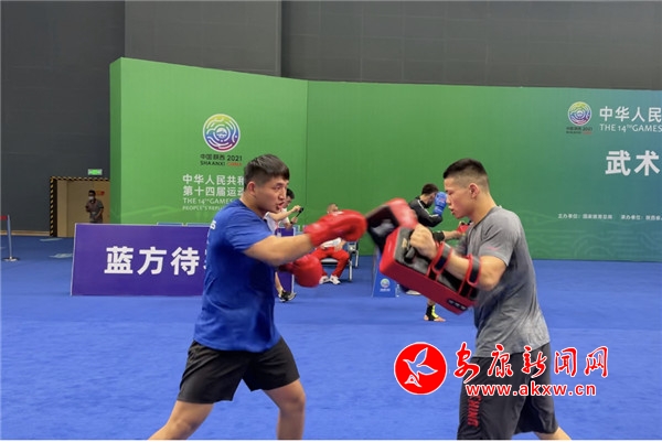 本网讯(记者 陆青波 魏涛)9月19日,记者看到参加第十四届全运会武术散打项目的24支代表队,依次进入安康市体育馆,展开开赛前的场地适应性训练。