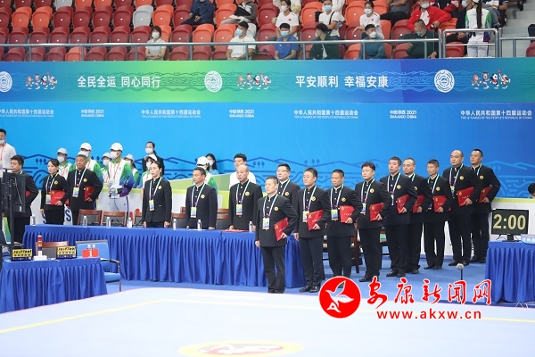 国家体育总局武术运动管理中心主任、党委书记、十四运会武术散打项目竞委会执行主任陈恩堂,国家体育总局武术运动中心副主任、十四运会武术散打项目竞委会副主任张征以及中心搏击部有关负责人,十四运会武术散打项目竞委会副主任、安康市政府副秘书长刘福全等现场观看了首日第一单元的比赛。
